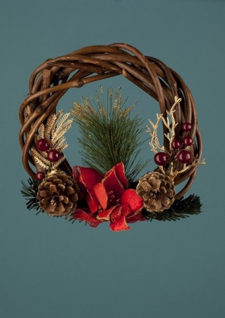 Декор: ветки, шишки, искусственный цветок, пластиковые веточки и ягоды." 182,00